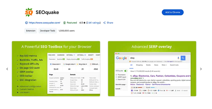 SEOquake is like getting a firehose of data blasted into your browser. Built by Semrush, it dumps keyword metrics, site audits, and backlink info onto your screen. Want a full SERP overlay with keyword difficulty, traffic estimates, and ranking pages? One click.