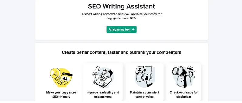 Think Grammarly, but with an SEO brain. Semrush Writing Assistant lives in your browser and grades your content on readability, tone, originality, and SEO optimization. It pulls keyword recommendations straight from Semrush, so you’re not just writing pretty sentences; you’re writing content designed to rank.