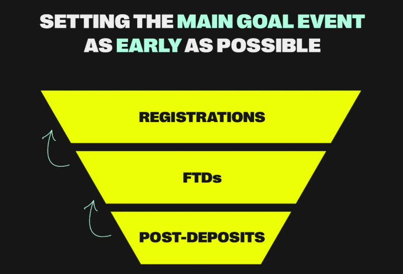 Track everything. Don’t just focus on final purchases. Track registrations, deposits, and post-deposit actions. The earlier along the funnel you start to monitor, the more signals you feed the algorithm. The more data the algorithm has, the faster it learns who converts and where to find more of them. In short, data is your campaign’s oxygen.
